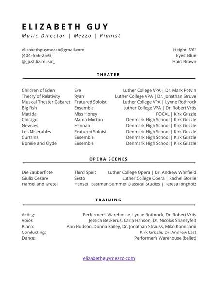 Elizabeth Guy (she/her) is a 20 year old performer based in Atlanta, Georgia, studying in Decorah, Iowa. She is a third year undergraduate vocal performance major at Luther College, with minors in musical theater and management. She looks forward to performing and studying musical theater, opera, piano, and conducting during her fall 2025 semester.